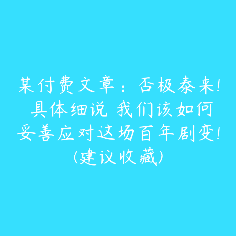 51自学联盟分享某付费文章:否极泰来! 具体细说 我们该如何妥善应对这场百年剧变!(建议收藏)课程目录如下: