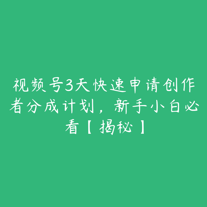 这次要讲的,是在视频号上发视频挣米项目——视频号创作者分成计划。微信视频号创作者分这款创富神器你想要吗成计划,小白也能做,关键是不用露脸,不用拍摄,也不需要粉丝。但是很多新手小白都卡在了第一步怎么快手开通分成计划,今天就给大家分享一个视频号3天快速申请创作者分成计划教程