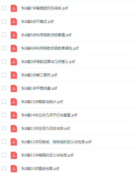 此课件来自猿辅导网校,徐敏高三数学2021秋季A班课程,包含视频课程和讲义资料。此课件主要知识点包括:平面向量、解三角形、导数运算及几何意义、利用导数求函数单调性、利用导数求极最值、不等式、等差数列及综合、等比数列及综合、通项式、直线与圆的方程、椭圆的定义及性质、双曲线、抛物线定义及性质、空间几何体与球、立体几何平行与垂直、概率与统计等视频。