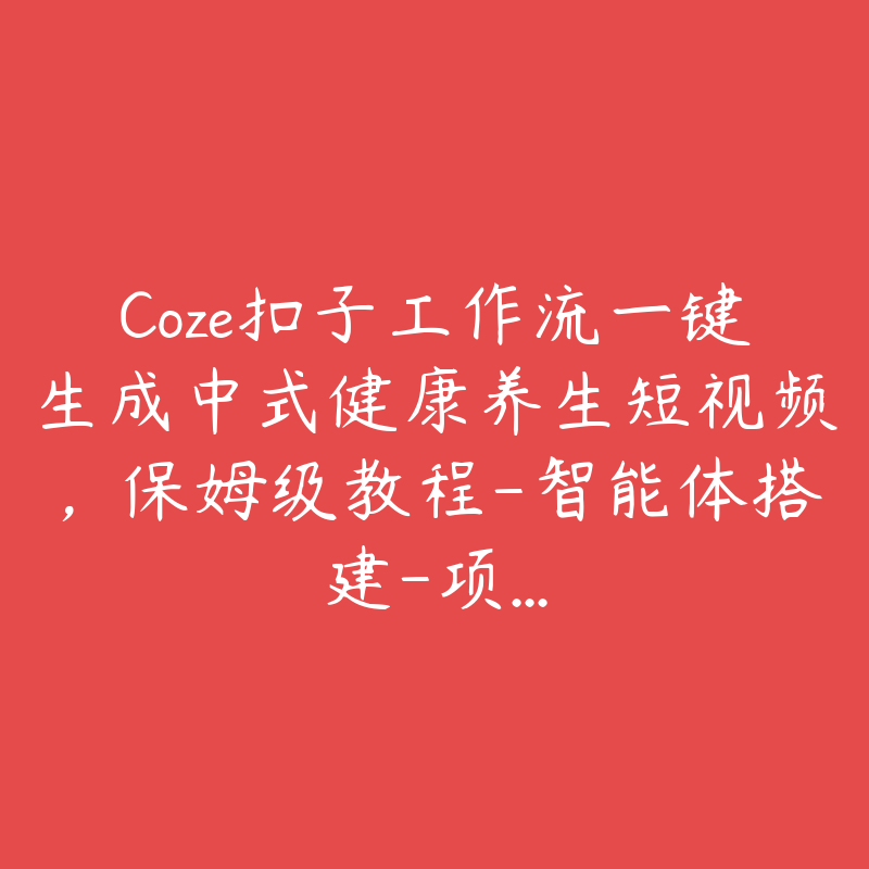 51自学联盟分享Coze扣子工作流一键生成中式健康养生短视频,保姆级教程-智能体搭建-项…课程目录如下: